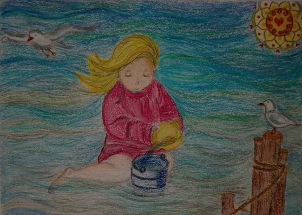 A la niña que fui, mi niña, la visualizo en posición fetal, metida en una capsula transparente. Con los ojos muy abiertos mirando todo y con la boca cerrada. Así la veo, depositada en el fondo del mar. La oculté para protegerla