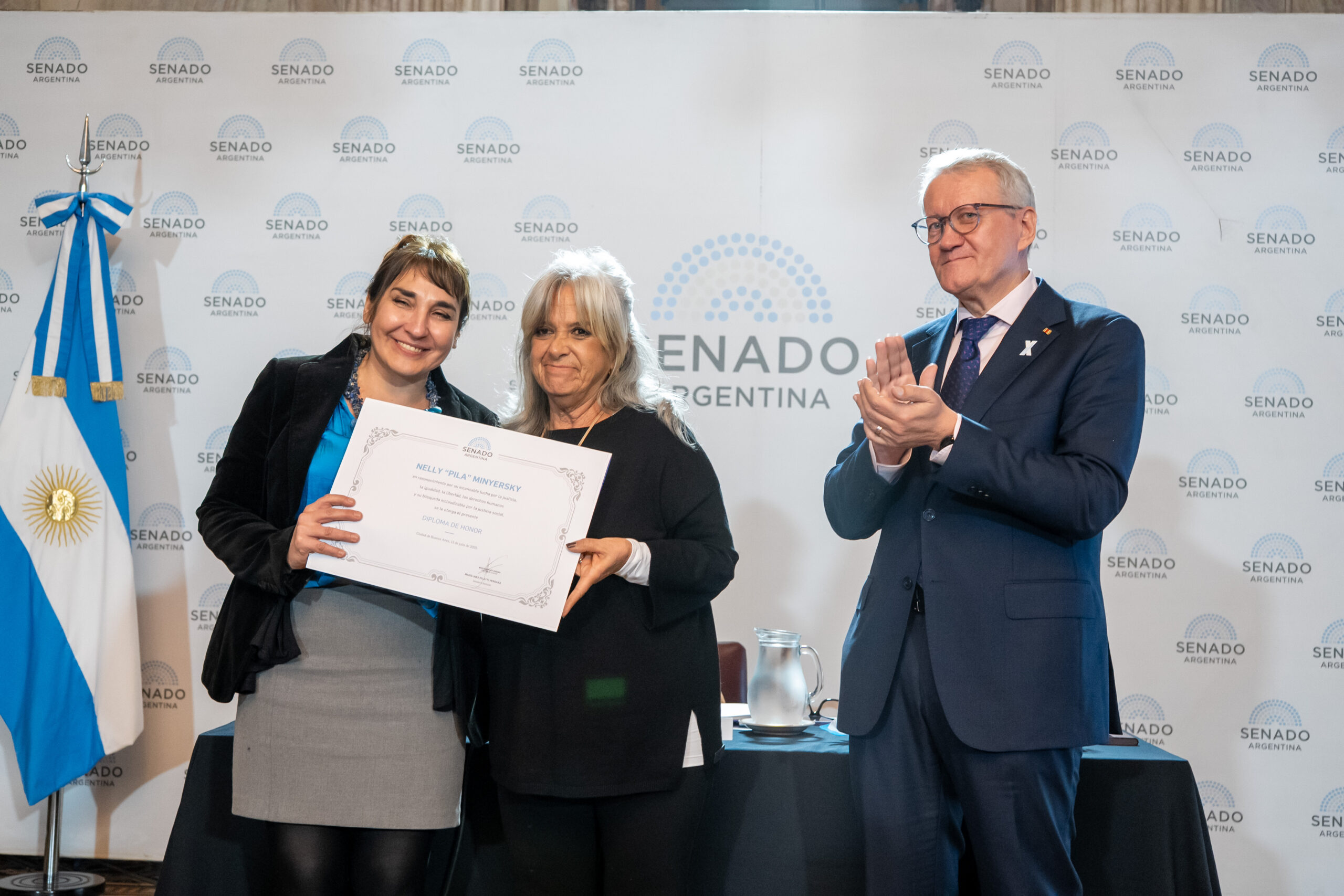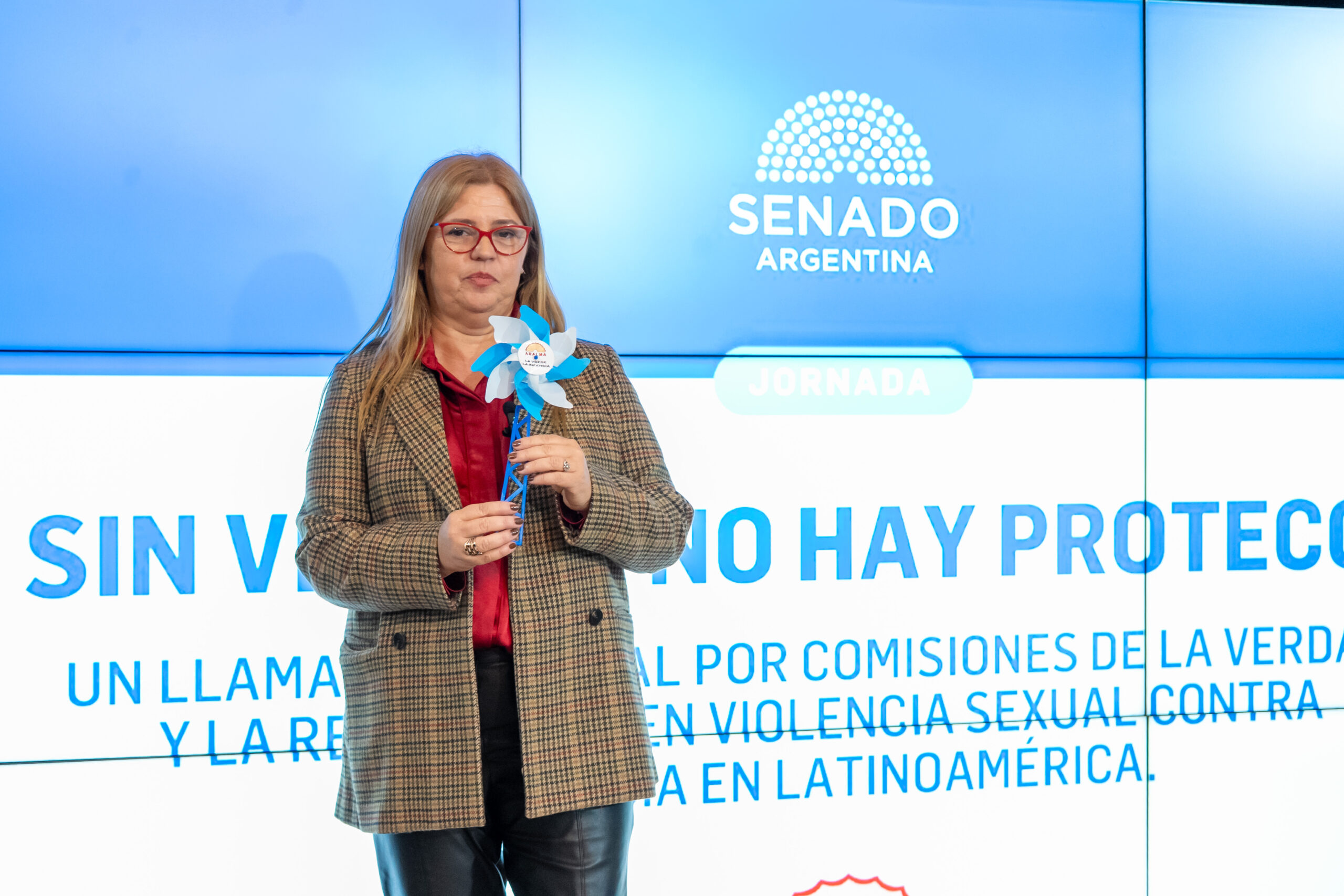 Durante la jornada se hizo entrega del diploma de honor del Senado de la Nación a Aralma, en reconocimiento por su invaluable aporte en la defensa de los derechos de bebés, niños, niñas, adolescentes y adultos sobrevivientes de violencias padecidas en la infancia.